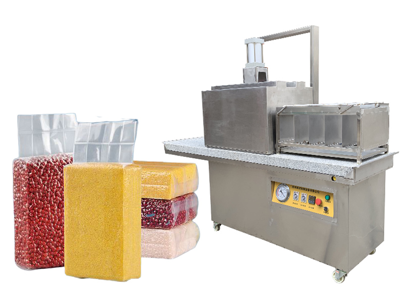 3、立式封口,最大限度利用真空室空間,一次可包5袋(5Kg/袋) 。